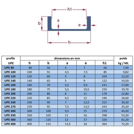 60,86 € TTCPoutrelle Profil UPE - Acier S 235 JR G2 selon NFEN 10-025(Pour des coupes sur mesure, contactez-nous pour obtenir un devis au meilleur prix dans l'heure qui suit)